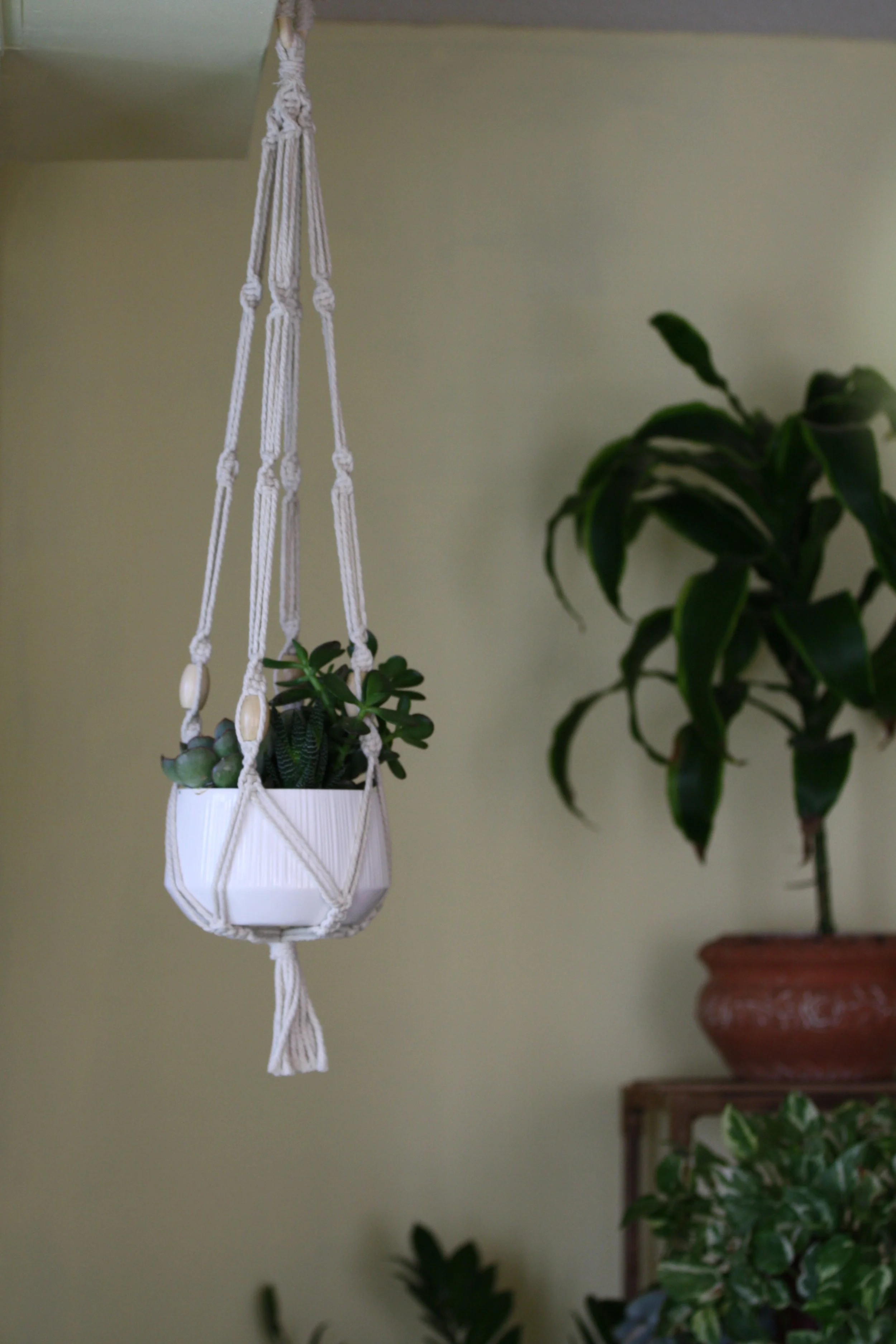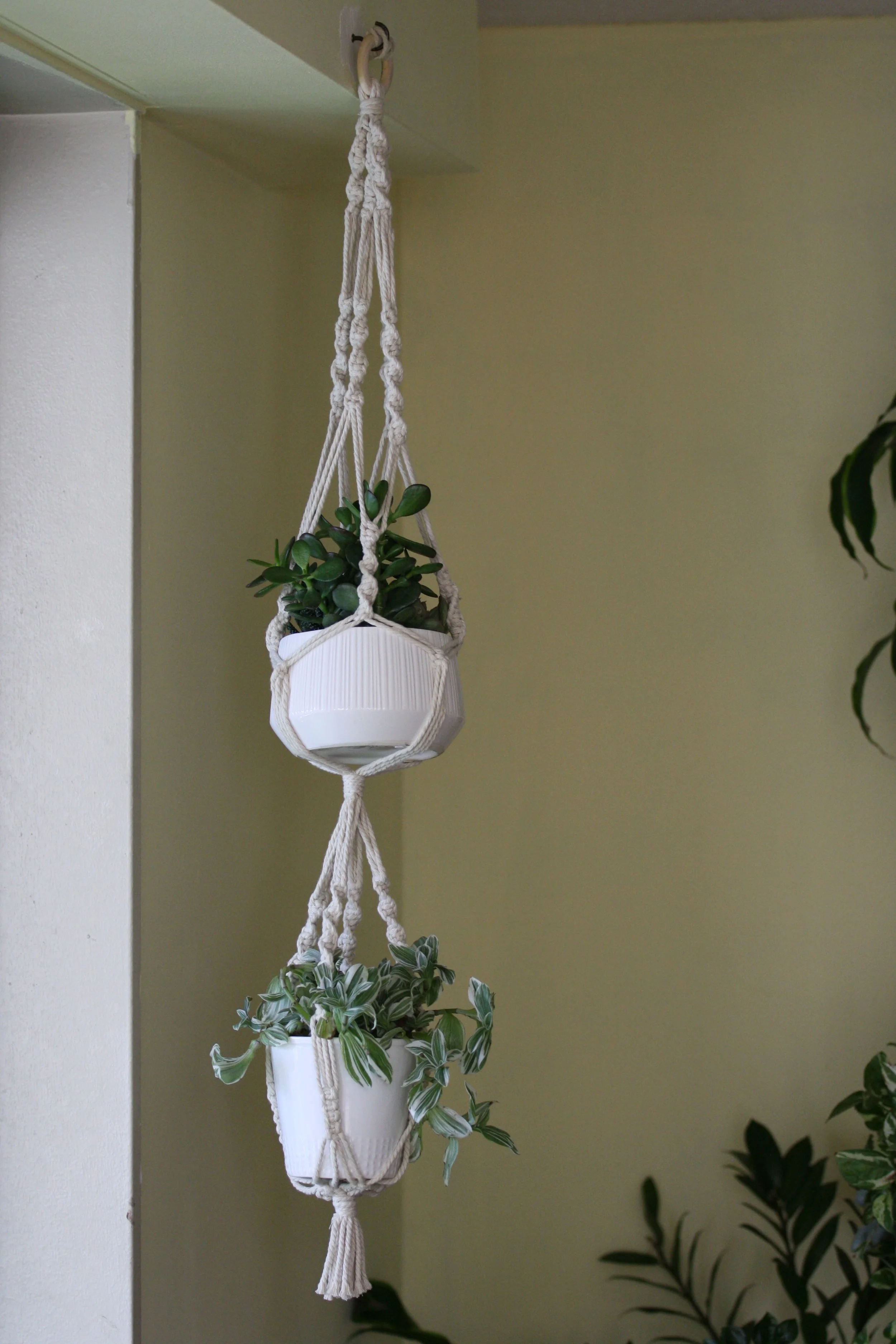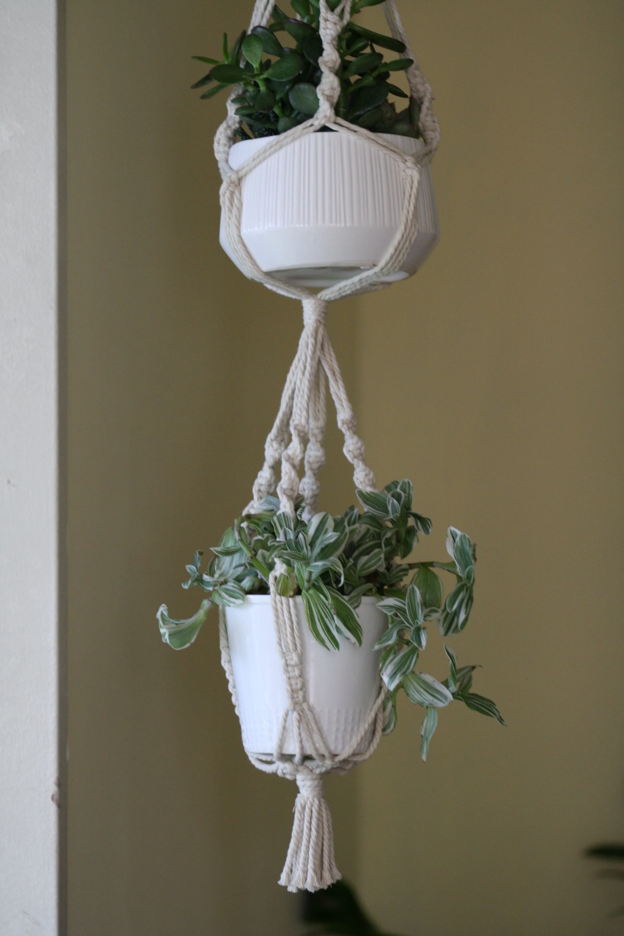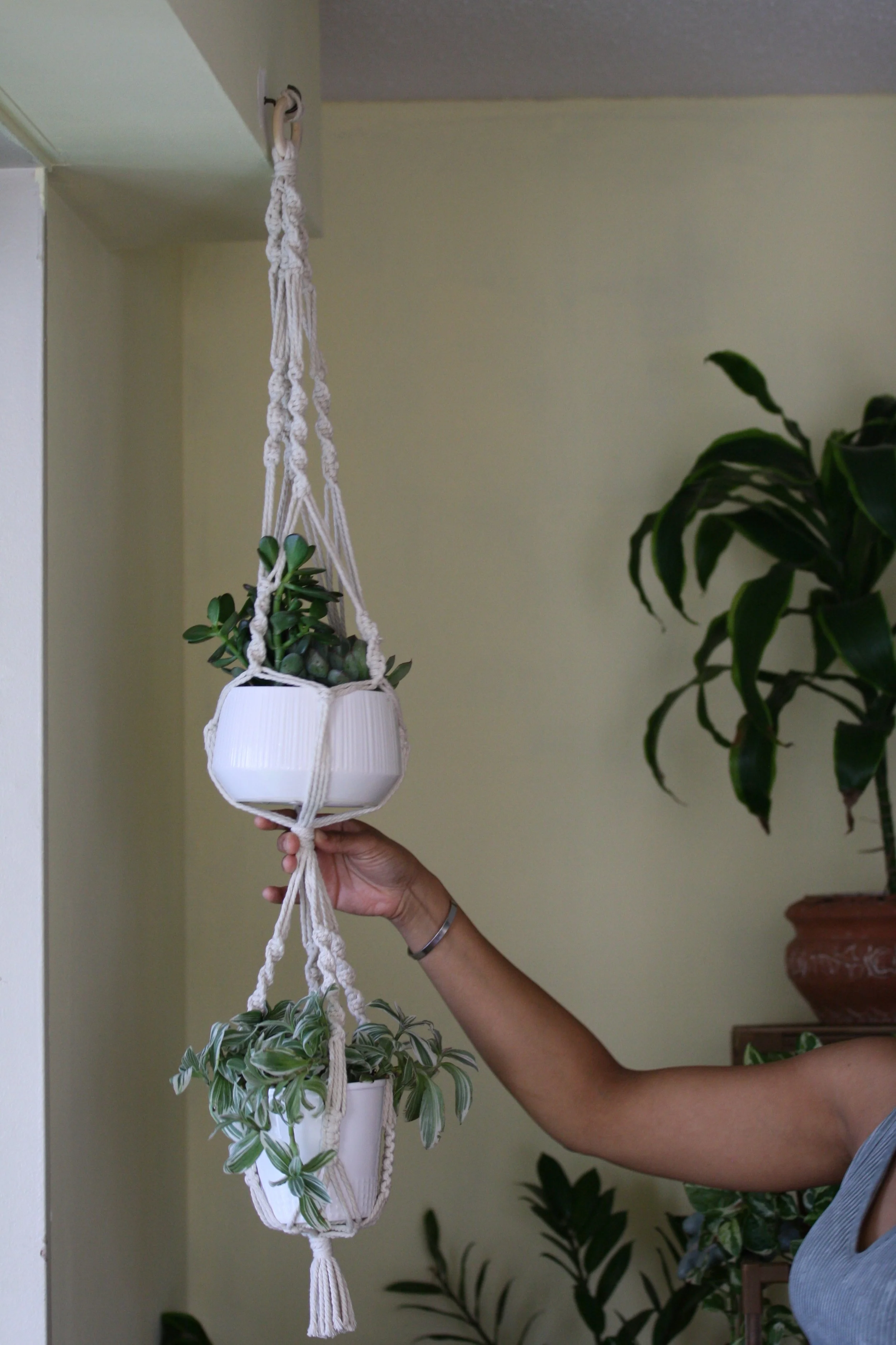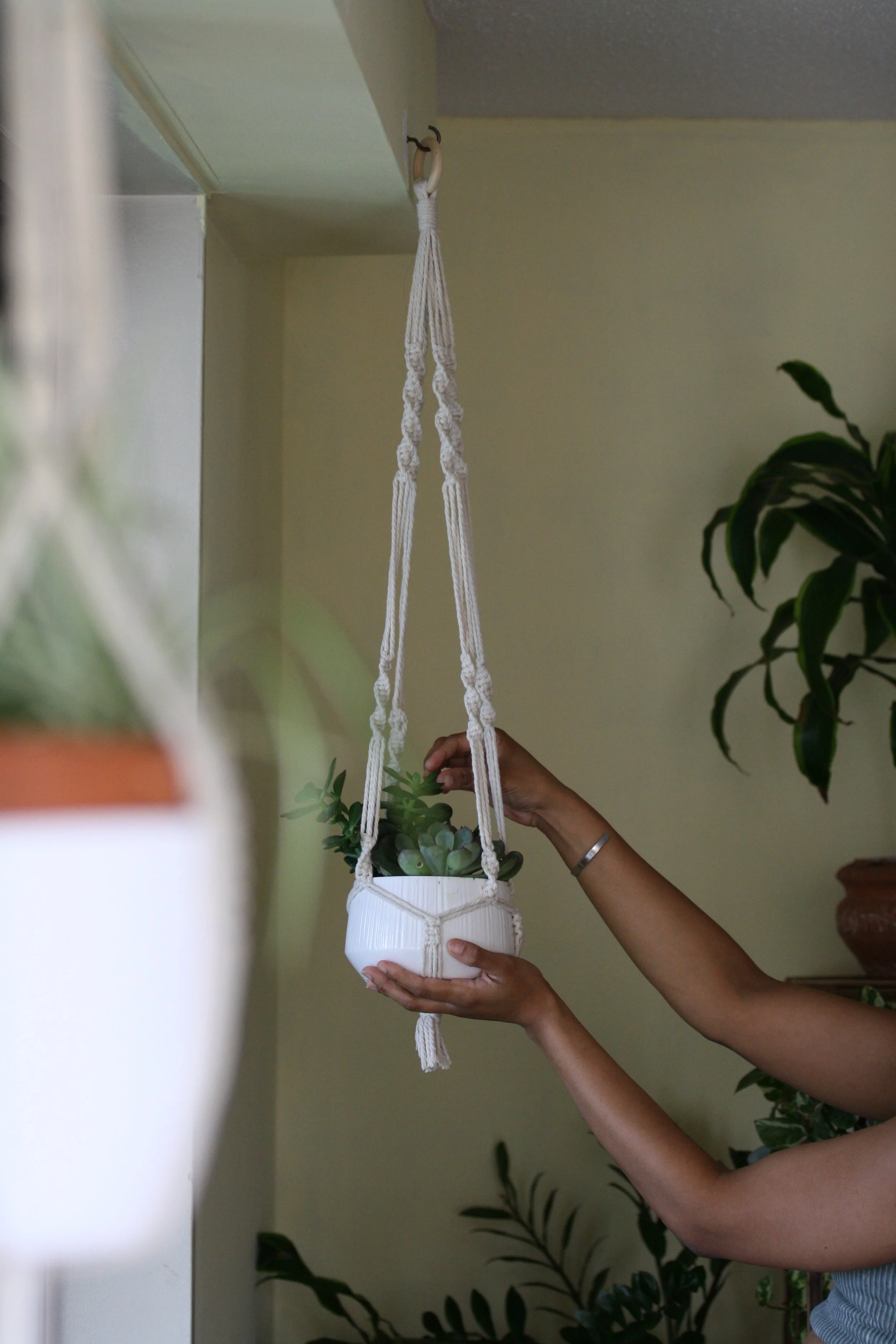 Each plant pendant can be purchased individually or customized as part of a larger installation, designed to complement your vision. Whether you’re looking for a standalone plant hanger or a piece that integrates into a full macramé structure, these pendants offer a versatile way to add texture and movement to your décor